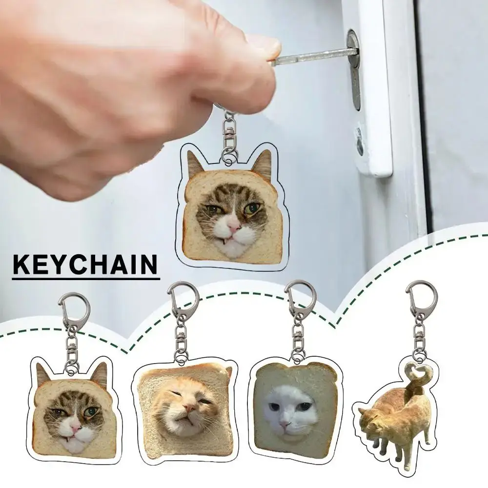 Cartoon Happy Funny Cat Keychain Small Acrylic Toast Cat Pendant Key Ring Portable Bag Accessories Bag Pendant Keyring Women